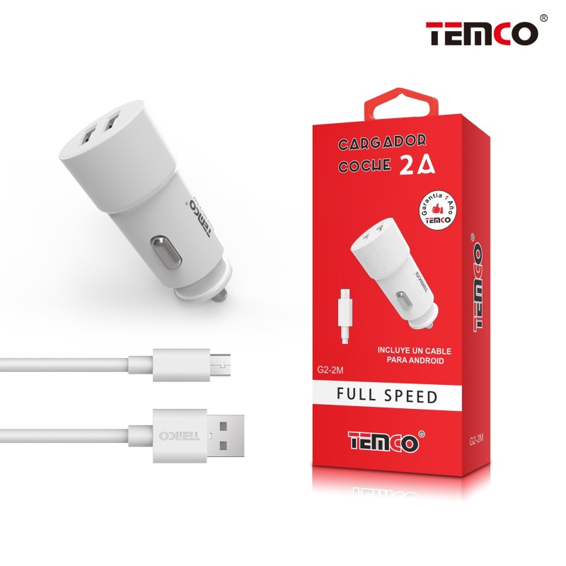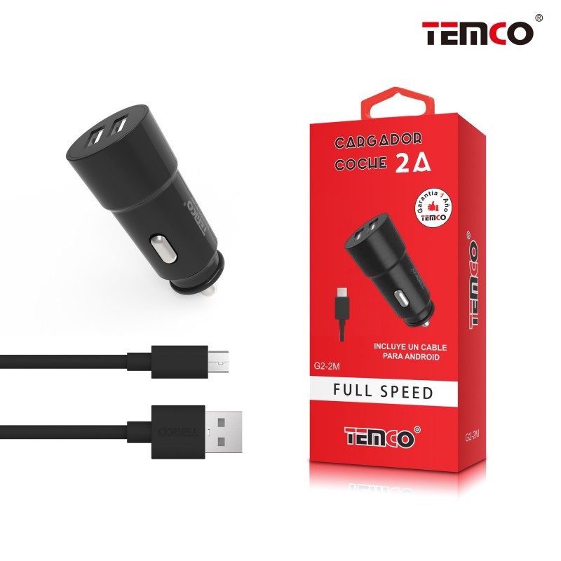 Car USB Charger. Designed with a classic and durable style, made with ABS material (flame retardant) and protected against voltage spikes, excess temperature and short circuits.