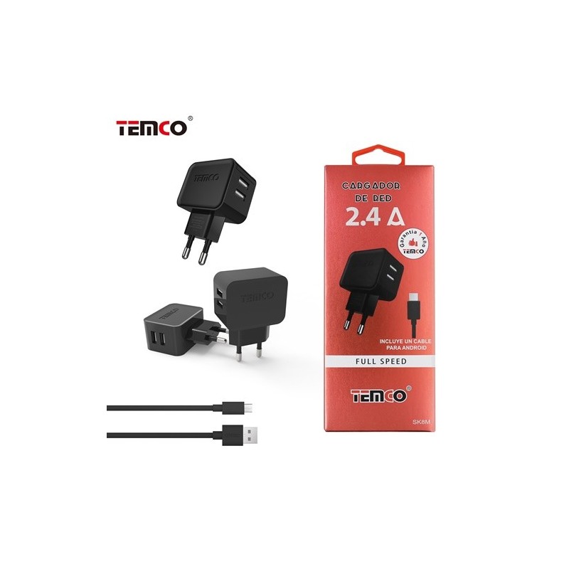 Temco SK8 Home charger Twin USB2.4A with Micro USB cable